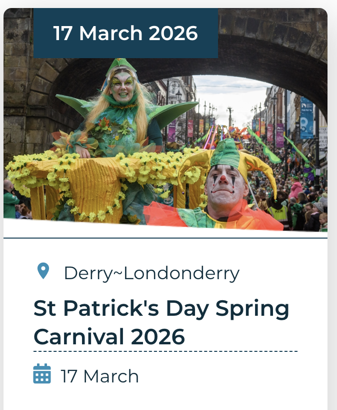 This year’s St Patrick’s Day Spring Carnival is packed with unmissable festivities, offering something for everyone to enjoy. From live music to captivating street performances and walkabout characters, the city will come alive with energy and excitement. Savour mouth-watering food from local vendors, explore the charm of traditional Irish music and be part of the magic as the St Patrick’s Day Parade winds through the streets, showcasing dazzling displays of colour, creativity, and culture. It’s the perfect way to celebrate Spring in Derry/Londonderry!