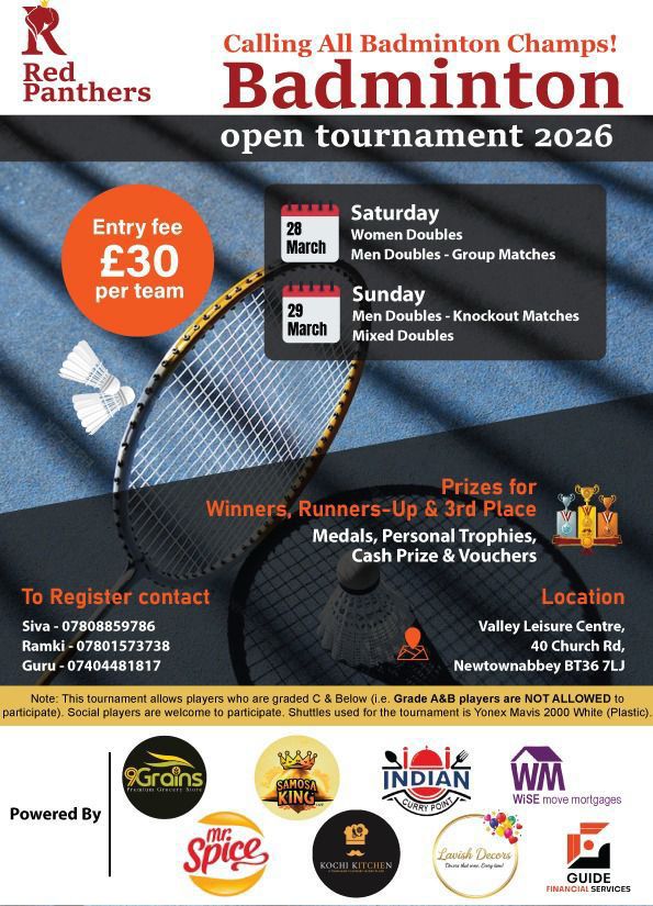 Those who wish to participate in Badminton Competition please contact Hari -+447442657188 as per your earliest convenience.
